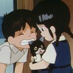 Кошка приносит мышь. Эпизод, который мог показаться комичным, на самом деле становится уроком любви. Мать объясняет Нобуко: «Кошки делают так для того, кого любят». Это момент взросления девочки, понимания, что забота может проявляться по-разному .